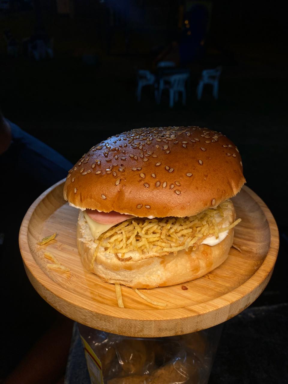 Pão, Requeijão Cremoso, Batata Palha, Presunto, Queijo, Hambúrguer PRENSADO PERFEITO